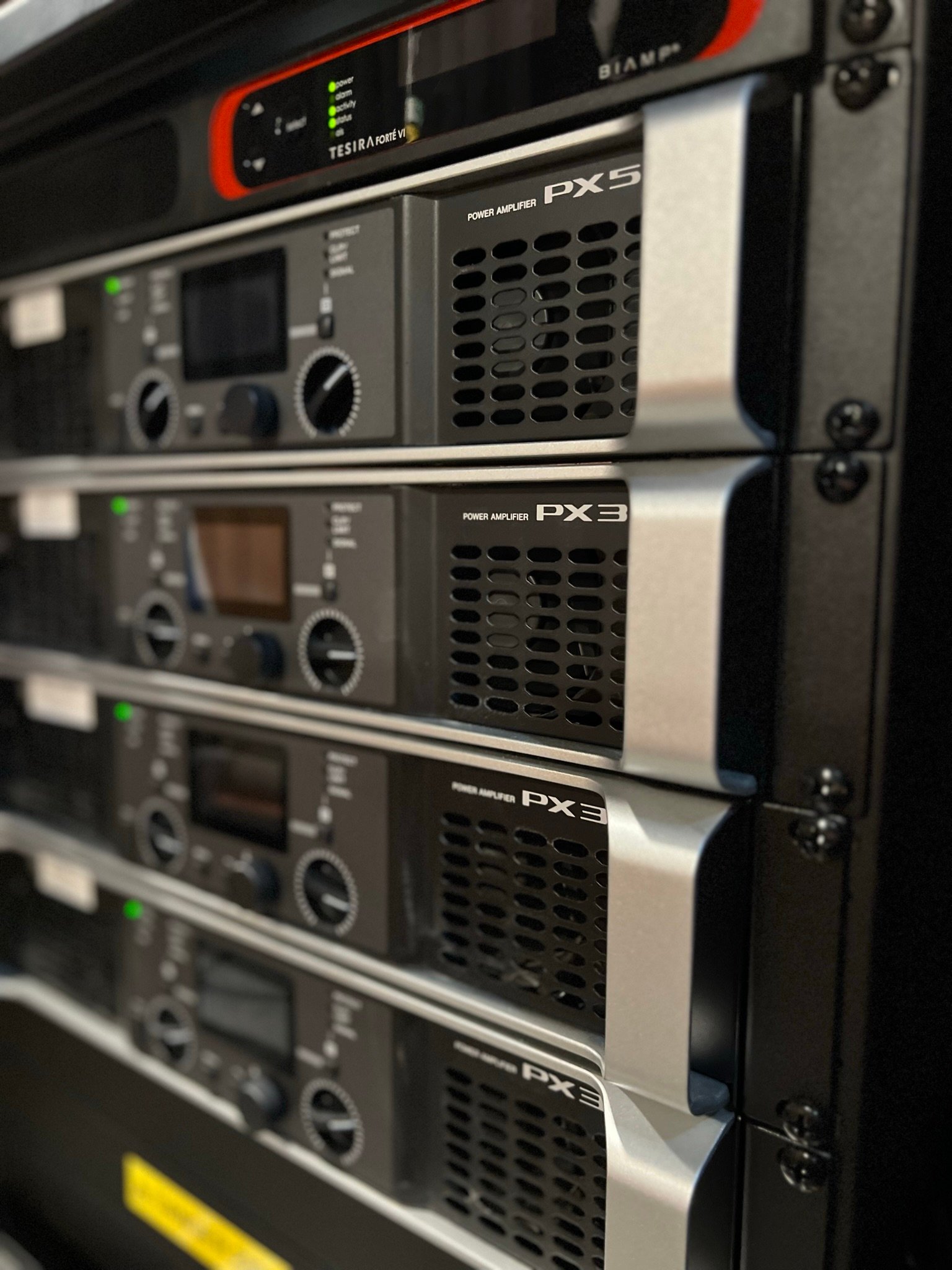 Wireless microphones, digital sound desks and ultra bright projectors.